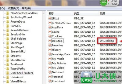 将地址更改为D:Desktop点击确定,在开始搜索栏搜索 regedit.exe 按照下述目录打开HKEY_CURRENT_USERSoftwareMicrosoftWindowsCurrentVersionExploreruser Shell Folders,更改桌面系统参数值;