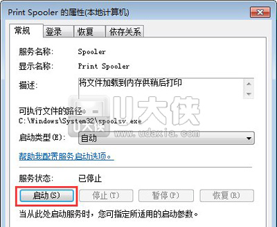 4、同时点击“启动”按钮来启用该服务。
