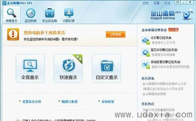 1、首先排除病毒原因,使用最新版本的金山毒霸快速查杀3-5分钟,根据检查结果,点击立即处理。