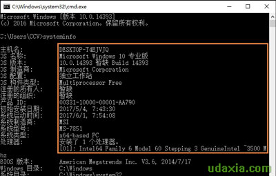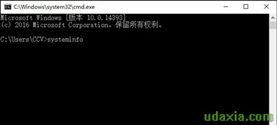 2、在出现的命令提示符界面中输入:systeminfo 回车。