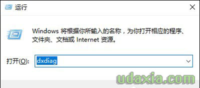 1、按下Win键+R键→在出现的运行窗口中→输入:dxdiag →点击“确定”。