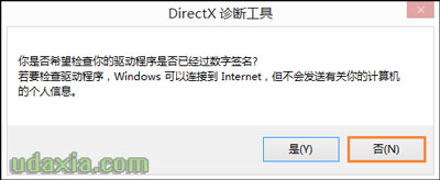 2、接着会出现DirectX诊断工具窗口→选择“否”即可。
