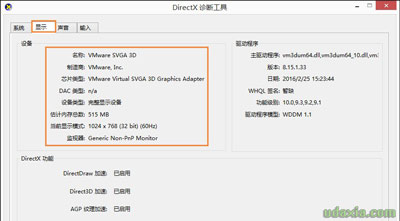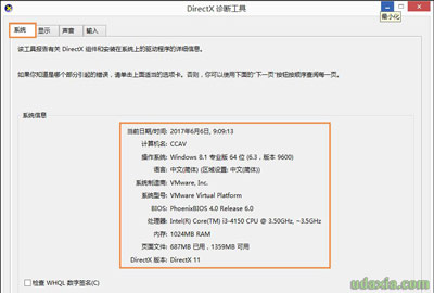 3、在DirectX诊断工具的“系统”和“显示”栏目可以看到我们所要的电脑配置情况。
