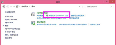 2、在【程序和功能】下找到【启用和关闭Windows功能】,点击该功能打开对话框,可能过程比较慢;