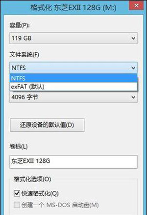 另外,在格式化优盘的过程中,容量在64G甚至是更大规格时,系统识别自动格式化为exFAT与NTFS格式,会便于优盘在不同操作系统电脑上无障碍使用。