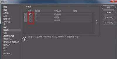 5、在暂存盘中把所有盘都作为暂存盘;