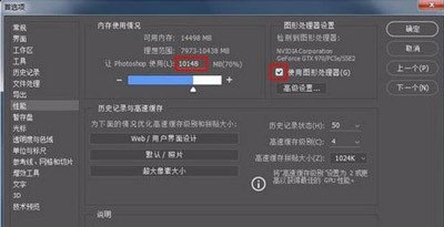 7、调整内存理想范围(70%左右,太高占用其他软件会卡),把图形处理器打上对钩;
