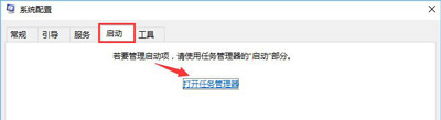 2、在启动项选卡下点击【打开任务管理器】;