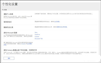 4、将页面中“其他Cortana数据以及个性化语音、印刷和打字”选项清除,这样保存在云端的隐私数据就被清除掉了。