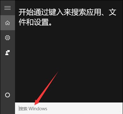 1、使用Win+S快捷键打开小娜界面,选择左侧的齿轮图标。