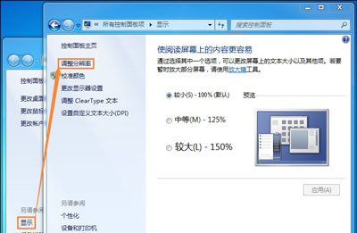 2、在弹出的窗口上找到“显示”按钮点击它然后在继续下一窗口上点击【调整分辨率】按钮。