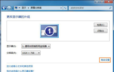 3、最后打开了屏幕分辨率窗口了然后我们可以在上面设置分辨率大小不过现在我们说的不是分辨率的问题继续点击打开【高级设置】按钮。