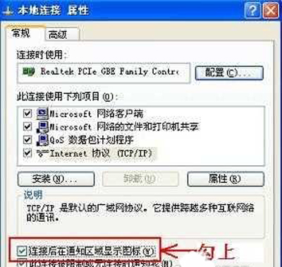 第一种:任务栏右下角的本地连接不见了,用户可以正常上网,但任务栏中没有本地连接图标了,这种情况比较容易解决,首先,右键点击“网上邻居”——》选择“属性”——》在打开的“网络连接”中找到“本地连接”——》右键点击“网络连接”——》选择“属性”——》在弹出的“本地连接”属性最下方找到“连接后在通知区域显示图标”,在它前面打上勾——》点击“确定”退出,现在在看看任务栏右下角是否已经有了本地连接图标了;