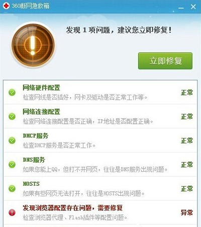 5、在DNS服务中,会显示异常,出现建议立即修复的提示。(我这因DNS无异常,截图只是作为参考)