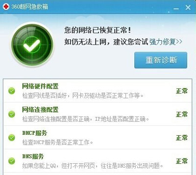 6、点击立即修复,此时网络会恢复正常。如果还未能连上网络,可点击强力修复,然后重启电脑。