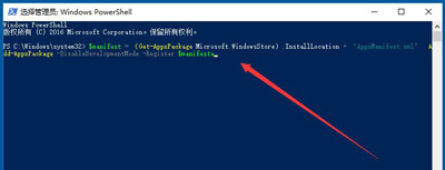 8、同上复制下面的命令:Get-AppXPackage -AllUsers | Foreach {Add-AppxPackage -DisableDevelopmentMode -Register “$($_.InstallLocation)AppXManifest.xml”}回车可以解决应用闪退或无任何反应。