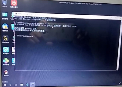 2、在弹出的命令提示符窗口中,输入“netsh winsock reset”,然后回车,重置完成后会提示重启电脑,此时我们直接正常重启电脑即可。