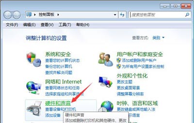 1、首先打开控制面板,进入控制面板以后“打开硬件和声音”如下图所示。