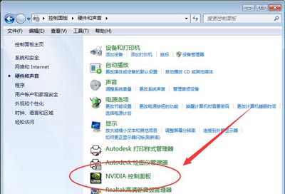 2、然后在硬件和声音里面选择打开显卡控制面板,如下图所示。