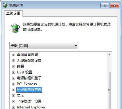 4、在高级设置里面找到“处理器电源管理”这一项,然后双击打开。