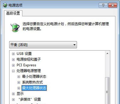 5、然后选择“最大处理器状态”,然后将其设置成90%以上即可。