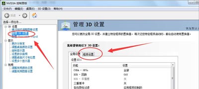3、进入到显卡控制面板以后,点击“管理3D设置”,然后再点击“程序设置”,如下图所示。