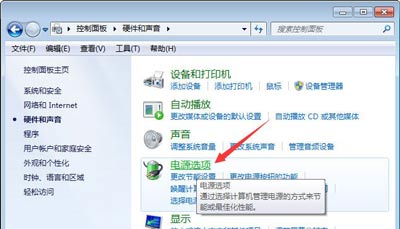 1、还是进入控制面板,然后打开“硬件和声音”,这次我们选择打开“电源选项”;