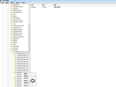5、右键点击“本地连接2”所在项的上一级项,这里的是“{7411E17E-59D4-4BBE-A4F3-938931C9F8C0}”,然后选择“删除”;
