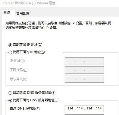 6.在下端的 选择——使用下面的DNS服务器地址,然后在首选DNS服务器填上114.114.114.114,在备用DNS服务器填上115.115.115.115,确定之后就OK了;