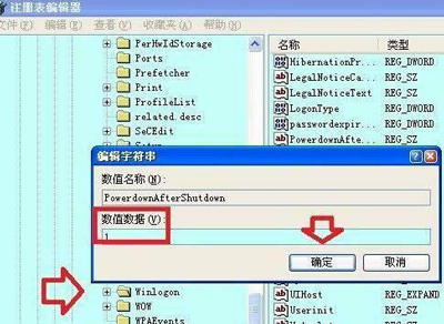 HKEY_LOCAL_MACHINESOFTWAREMicrosoftWindows NTCurrentVersionWinlogon,双击右边的键值:PowerdownAfterShutdown,将数值数据0改为1(按F5键刷新)即可;