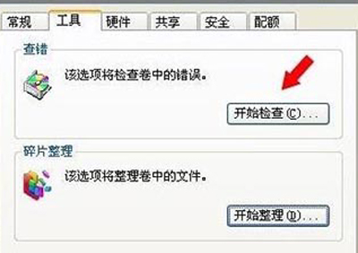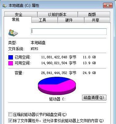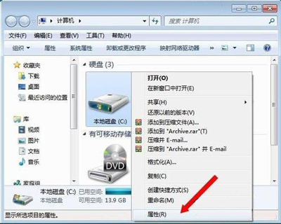 2、按照提示,先对磁盘进行一个自检:右键C盘→属性;如图所示: