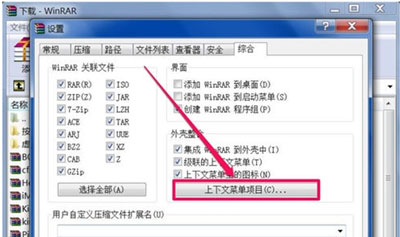 6、如果需要更细致对右键WinRAR菜单进行设置,点击“上下文菜单项目”这一项;