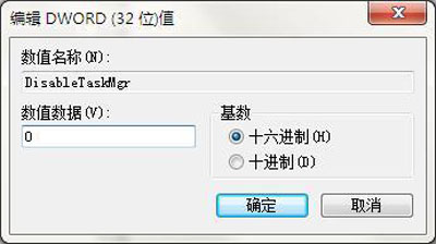5、双击打开DisableTaskMgr项,先将数值数据修改为【1】确定禁用任务管理器,再次打开修改为【0】恢复启用任务管理器;