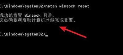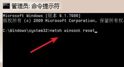 4、打开了dos窗口,在上面输入 netsh winsock reset 命令。点击回车键就行了。