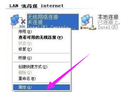 无线网络连接,右键,选择:属性