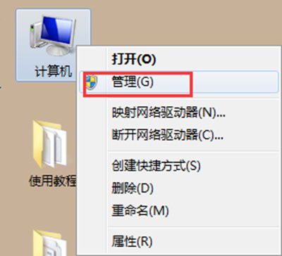 1.登录Windows7系统桌面,鼠标右键点击“计算机”,选择“管理”选项。如下图所示