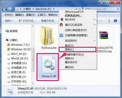 2、下载之后,解压出来,然后将libeay32.dll文件放到C:WindowsSystem32文件夹下。如图所示: 注意:如果是64位的系统,则放到C:Windowssyswow64文件夹之中。