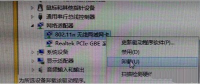 4、卸载无线网卡,如果你没有网线,电脑没有办法可以上网,这时候选择“卸载无线网卡”。如图所示: