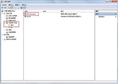 2、在本地用户和组里面找到用户,这时候就可以看到自己的用户Administrator,双击可以进去用户设置;如图所示: