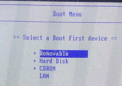 14、重新在开机时使用快捷键找到选择画面,选择第一项,U盘就在里面了