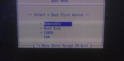 1、我们使用快捷键找到选择画面,通常情况来说U盘是在第一项里面,我们选择第一项