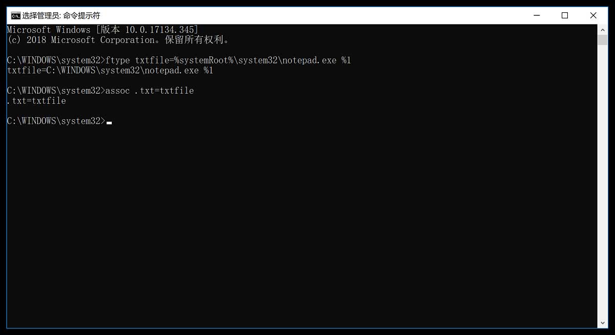 2。在命令提示符下键入或复制并粘贴:ftype txtfile u003dsystemRoot system32 notepad.exe 1输入无双引号,然后返回以下内容:txtfile u003dC: WINDOWS system32 notepad.exe 1