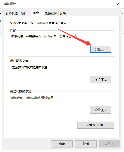 3、新窗口中选择高级选项卡,点击性能一栏的设置