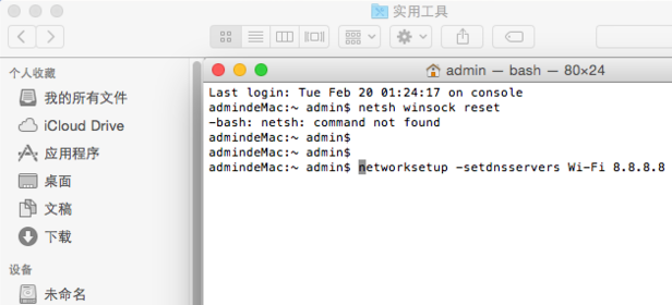 2、然后我们输入:networksetup -setdnsservers Wi-Fi 8.8.8.8修改自己的DNS,我们在网络设置里面修改也是一样的