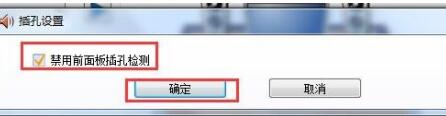 3、点击文件夹图标后,在弹出的悬浮窗口中,勾选“禁用前面板插孔检测”,然后点击下方“确定”按钮。