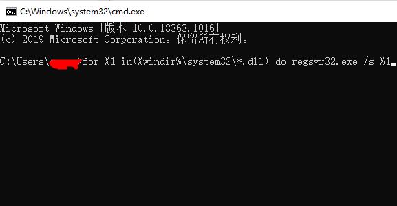 for %1 in(%windir%system32*.dll) do regsvr32.exe /s %1,随后即可完成。