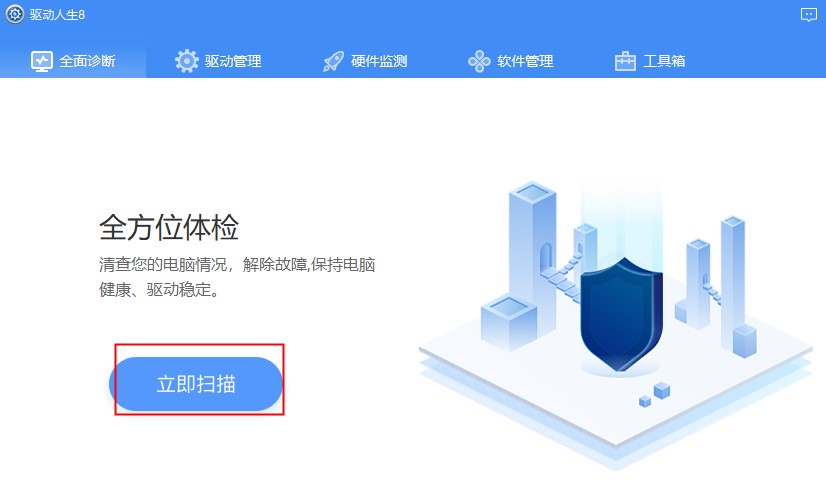 1、打开驱动人生软件,点击全方位体检—立即扫描。