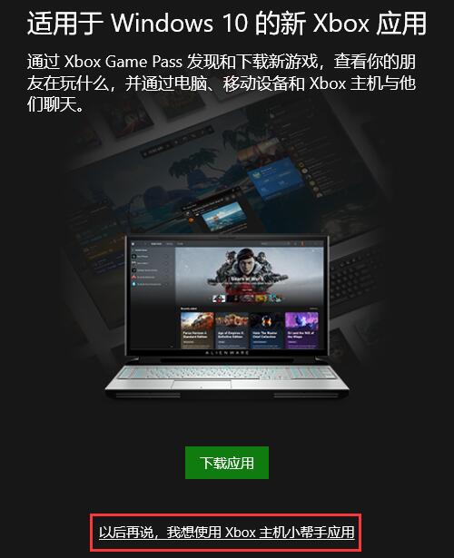 3、打开Xbox后,在主界面中,点击“以后再说,我想使用Xbox主机小帮手应用”后即可进入登录界面。