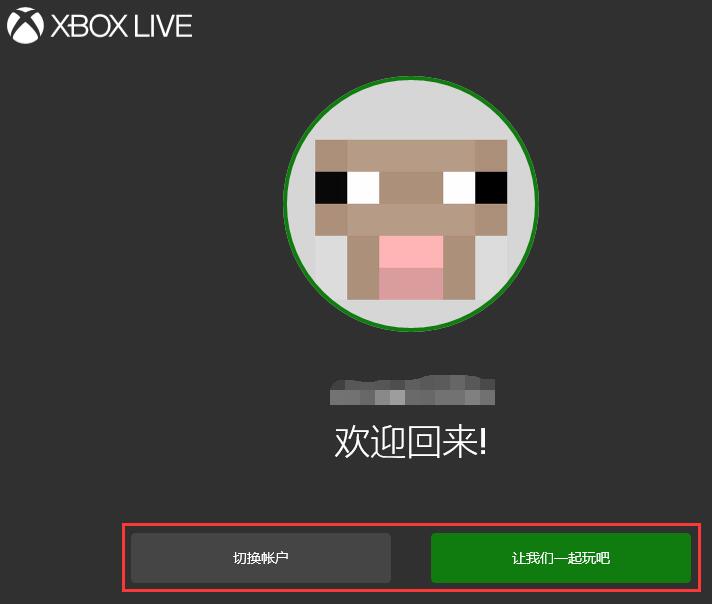 5、如果微软账户已经登录的话,点击“让我们一起玩吧”即可直接登录,或者点击“切换账户”进行登录使用等。