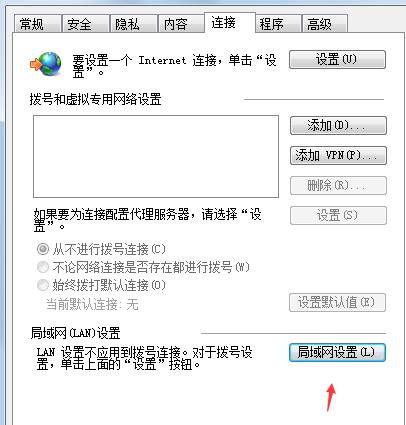 2、 点击 连接 → 局域网设置。